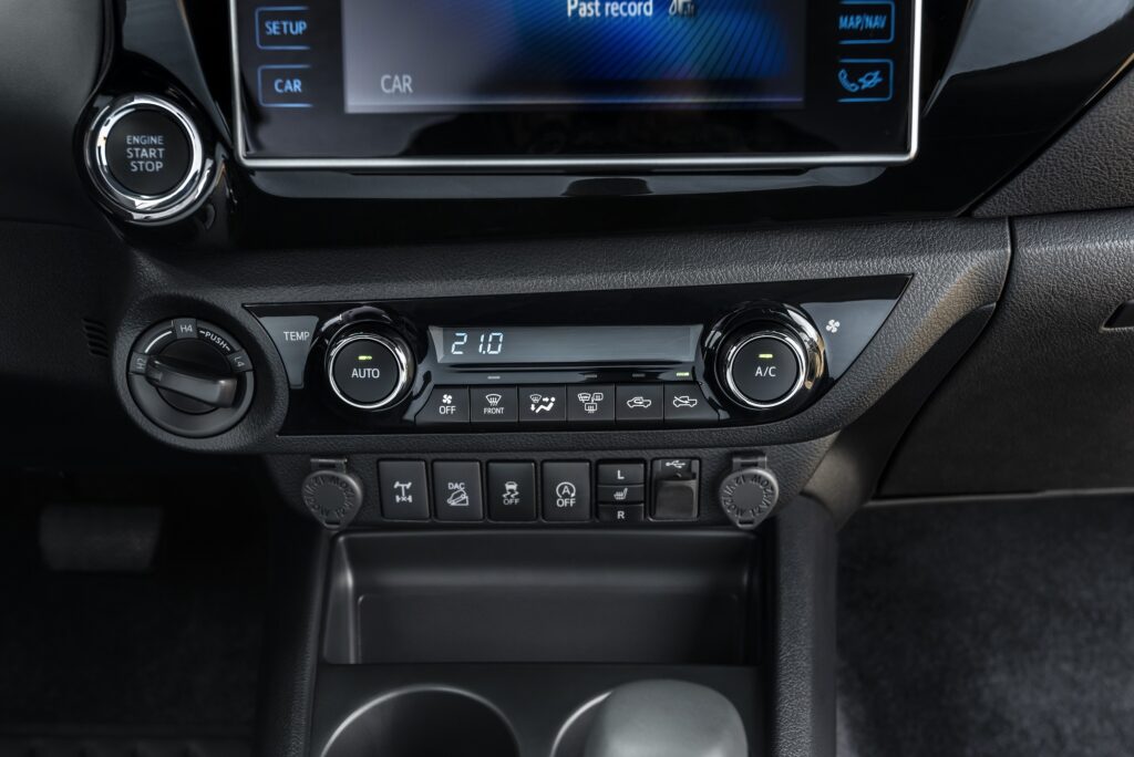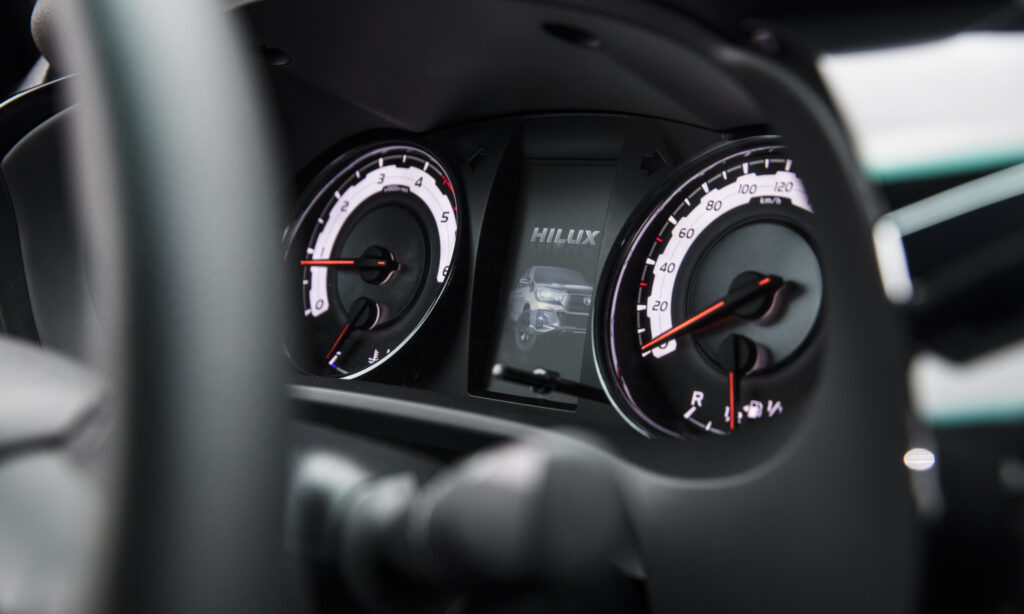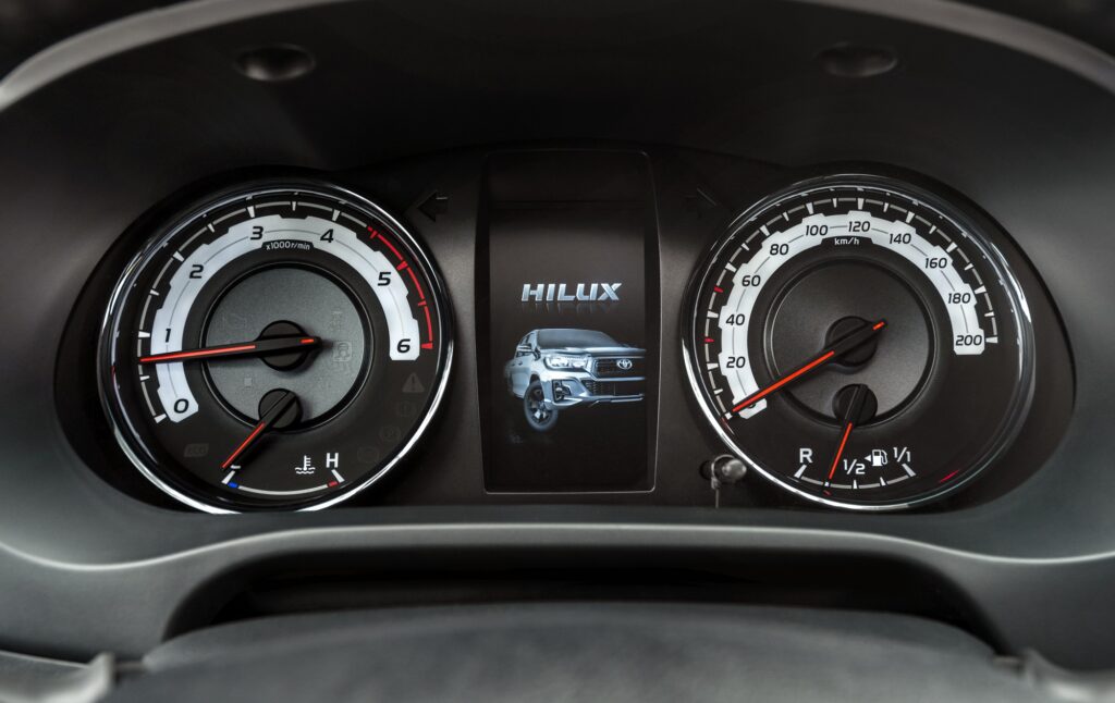 Pontuação: 9/10 Versão de topo na gama Hilux, a Tracker Premium Edition é, também por esse motivo, sinónimo de um equipamento de série muito rico. Inclusive e além da garantia de sete anos, da presença de soluções a que, até mesmo alguns veículos de passageiros, só podem aspirar! É o caso, por exemplo, das tecnologias de ajuda à segurança e à condução, como o sistema de pré-colisão com detecção diurna e nocturna de peões e ciclistas, reconhecimento de sinais de trânsito, alerta de saída da faixa de rodagem e Cruise Controlo Adaptativo. Já no domínio do conforto, assegurado fica o ar condicionado automático, banco do condutor com ajuste elétrico, função de memória e aquecimento, sistema de luzes Follow-me-home, tecnologia Smart Entry & Start, e sistema de som com ligações USB/Aux-in, Bluetooth e seis colunas de som. Repetindo: um equipamento de série que envergonha muitas propostas bem mais familiares…